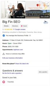 The Google Knowledge Panel displays information about your local business including location, hours of operations, and reviews. From the knowledge panel, you can access a company’s website, address, and phone number. One of the most popular aspects of a knowledge panel is access to photos.